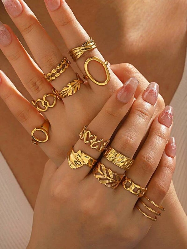Coffret Élégance est un ensemble de 12 bagues géométriques assorties, au style moderne et raffiné. Composé de formes variées comme le cœur et l’ovale, ce set est parfait pour sublimer vos mains au quotidien ou lors de moments spéciaux.