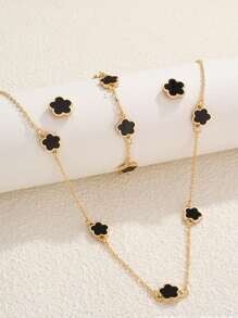 Trèfle Porte-Bonheur est un ensemble de 3 bijoux assortis au motif trèfle à quatre feuilles, symbole d’élégance et de chance. Composé d’un collier délicat, d’un bracelet raffiné et de boucles d’oreilles discrètes, cet ensemble est un clin d’œil subtil au charme et à la féminité.