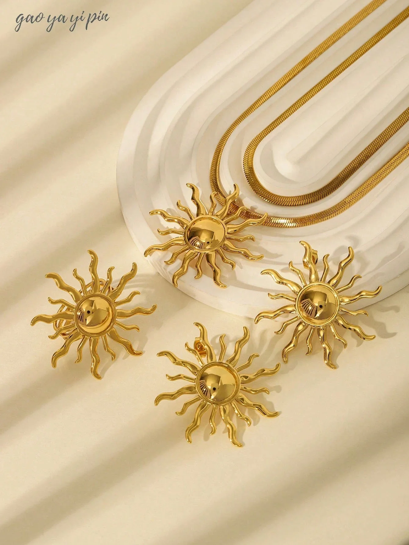 Description :Bijoux en acier inoxydable au design lumineux en forme de soleil, disponibles en collier, bague ou boucles d’oreilles, vendus séparément ou en ensemble. Parfait pour illuminer vos looks au quotidien ou offrir en cadeau.